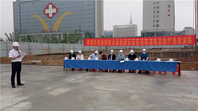 5月12日上午,孝感市傳染病救治基地舉行了消防演練及醫(yī)療急救演練,一醫(yī)院領(lǐng)導(dǎo),區(qū)代建辦及現(xiàn)場各參建單位工作人員共計50余人參加了此次安全演練。